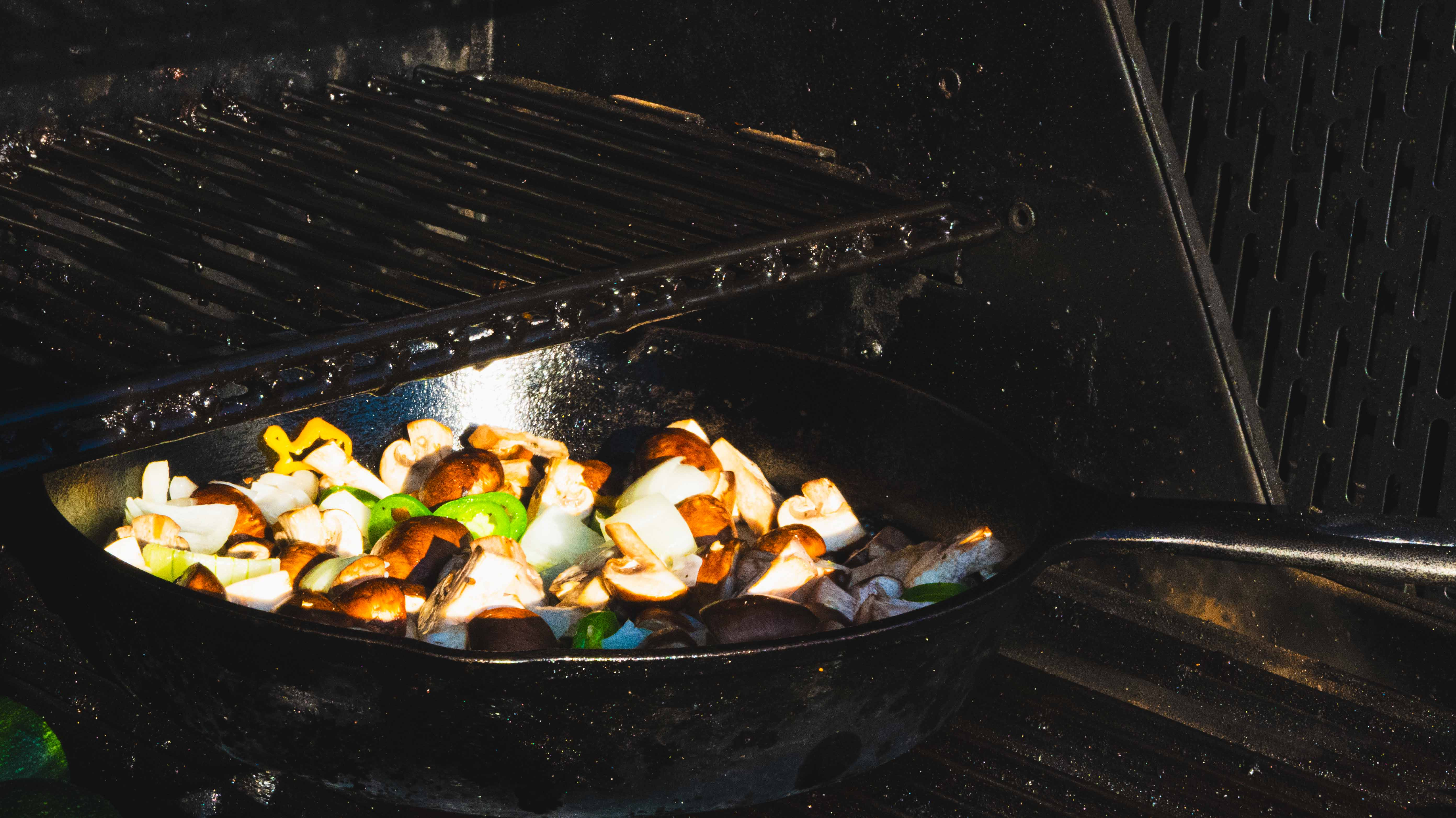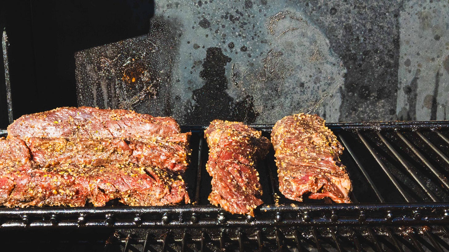 Heat the oxtail tallow in a cast iron skillet on the smoker or stovetop over medium heat.