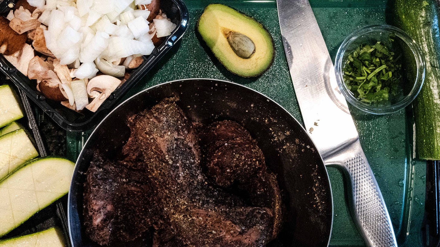Brush the zucchini slices with olive oil or oxtail tallow and season with salt and pepper.